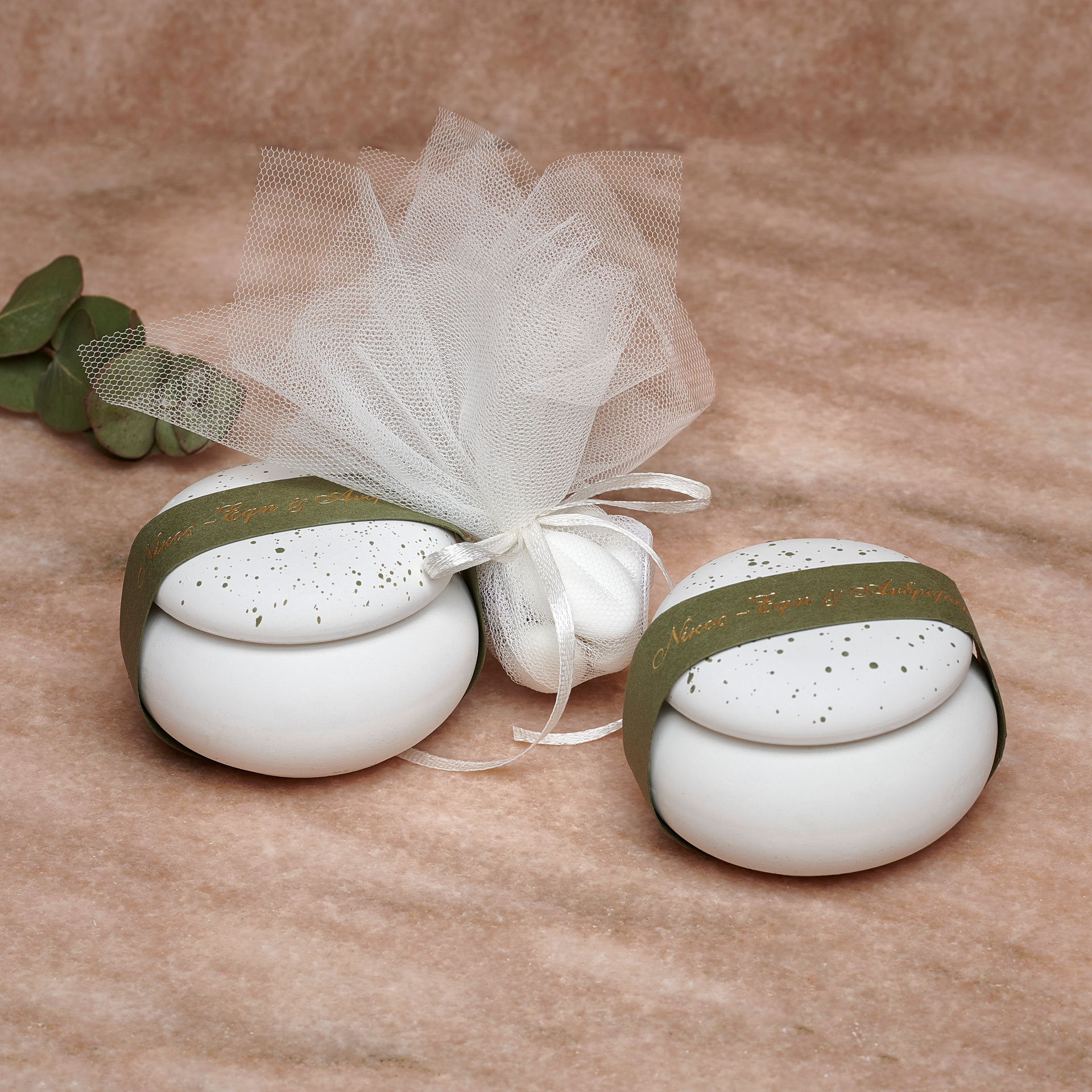 Κομψό διακοσμητικό αντικείμενο σε λευκή απόχρωση με χακί και χρυσές πινελιές