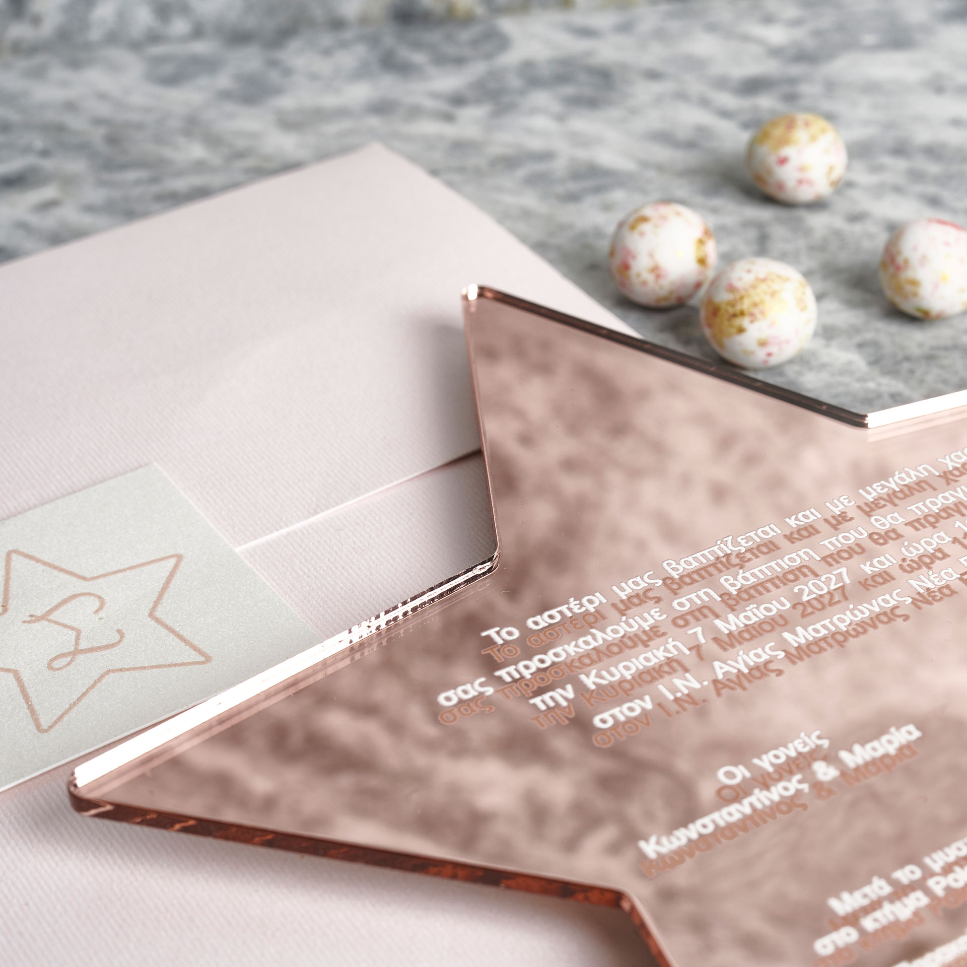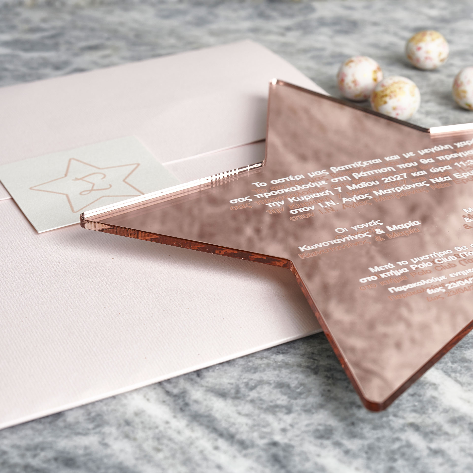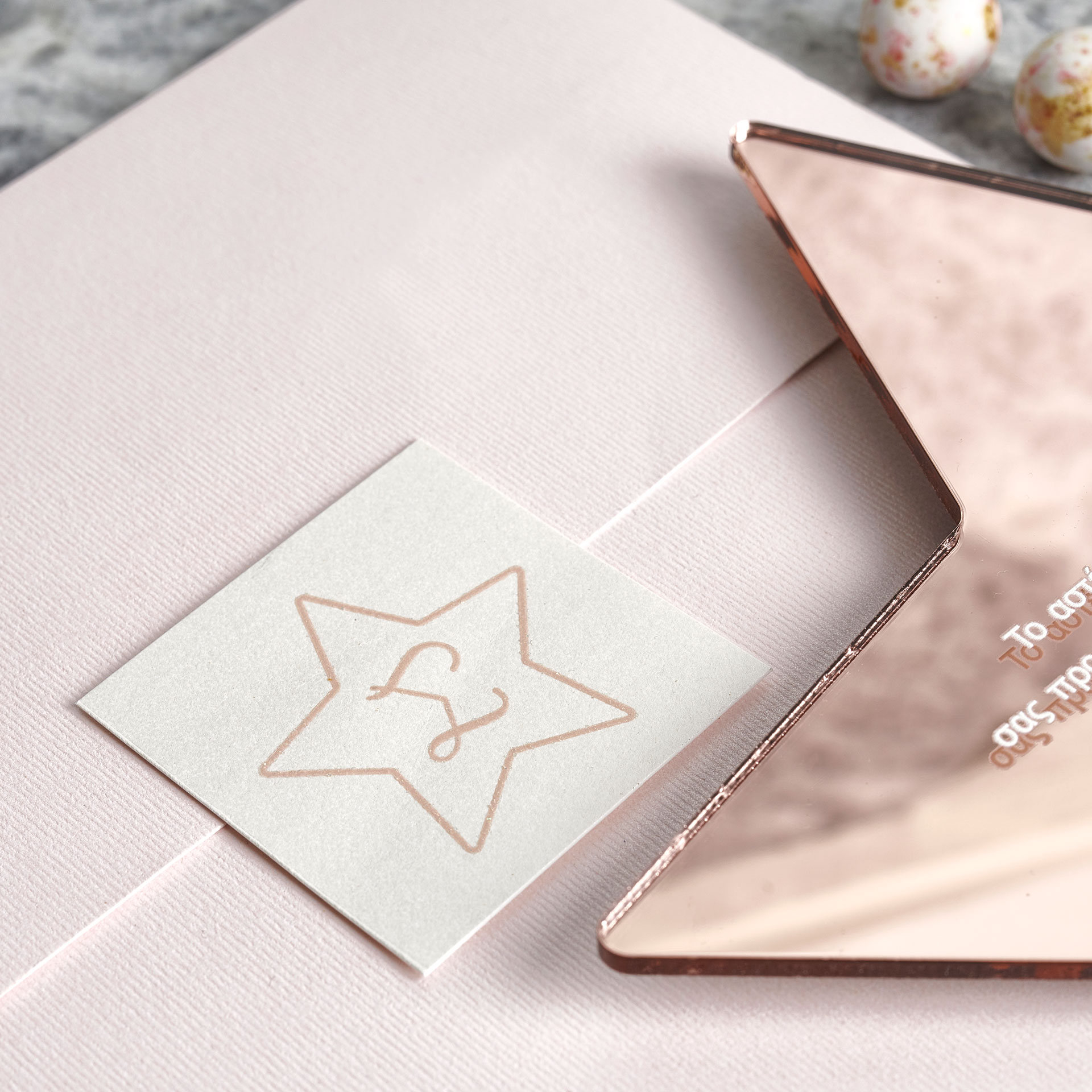 • Χαρτί: Ροζ-χρυσός καθρέφτης plexiglass σε σχήμα αστεριού